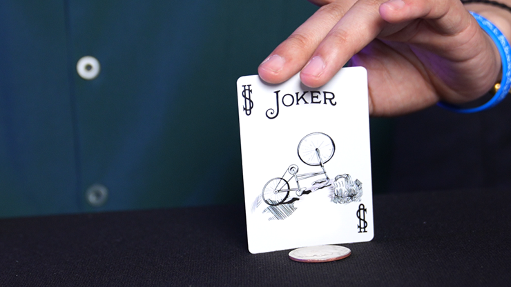 Le magicien montre deux cartes à jouer (le Grand Joker et le Petit Joker) et une pièce de monnaie, démontrant comment celle-ci disparaît et se déplace entre les cartes. Lorsque le spectateur tente l’expérience, la « magie » cesse soudainement d’opérer. Alors que tout le monde se demande ce qui a bien pu se passer, les cartes sont retournées : le Petit Joker a disparu, ne laissant qu’un vélo sur sa carte… tandis que sur celle du Grand Joker, le Petit Joker est maintenant agrippé au Grand Joker, échangeant un regard gêné.