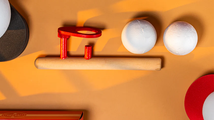Vous commencez par montrer un jouet en bois classique à votre public : un tuyau en bois et une boule de polystyrène. Vous soufflez ensuite de l’air dans le tuyau, faisant flotter la boule dans les airs comme par magie. Sous les rires de votre public, vous saisissez la boule et la tapez avec le jouet en bois. La boule semble solide, contrairement à la mousse de polystyrène. Vous la laissez ensuite tomber au sol, surprenant le public lorsqu’un grand BANG se fait entendre lorsque la boule touche le sol. Ensuite, la boule se transforme lentement en un VRAI œuf léger et délicat ! Enfin, vous cassez l’œuf dans un verre et regardez le public être époustouflé par la série d’événements qui viennent de se produire !