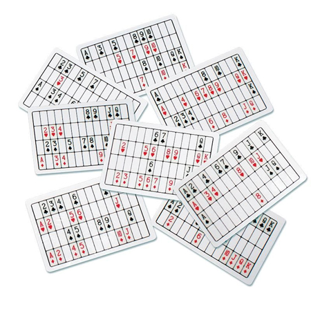 Il place ensuite sur la table huit cartes transparentes sur lesquelles sont imprimées des images de cartes aléatoires.