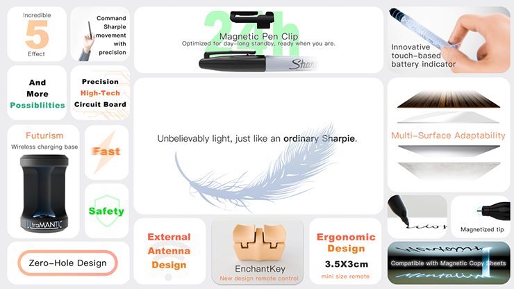 • La pointe du stylo est intégrée à un aimant, et la pointe magnétique peut être utilisée avec un appareil de duplication magnétique pour obtenir des effets de magie mentale exceptionnels.