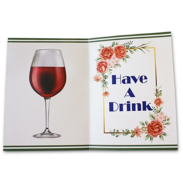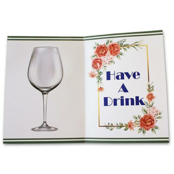 Le magicien présente une chemise, l’ouvre pour révéler l’image d’un verre à vin vide. Après l’avoir refermée, il introduit un verre rempli de vin rouge ou de jus de framboise. Et hop ! Il verse le contenu de la chemise sans aucune éclaboussure ! Puis il ouvre la chemise et, waouh, l’image du verre à vin vide est maintenant remplie de liquide rouge. Il inverse l’action : il verse le liquide de la chemise dans le verre. Qu’est-il arrivé à l’image ? L’ouverture de la chemise révèle que l’image du verre à vin est à nouveau vide.