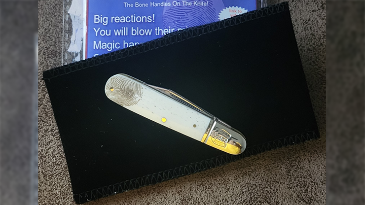 On donne au spectateur un petit couteau de poche. Il doit le placer entre son pouce et son index. Lorsqu’on retire son pouce, son empreinte est gravée sur le manche !