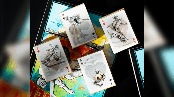 Chaque illustration de ce jeu a été dessinée à la main par la légende du skateboard et artiste, Lance Mountain. Lance a dessiné ces représentations squelettiques de ses photos emblématiques de skateboard au stylo Rapidograph. C’est une œuvre d’art.