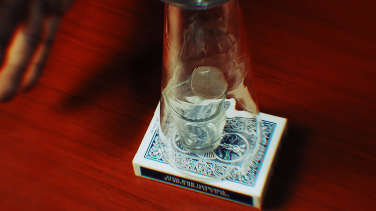 - Une pièce signée pénètre visuellement un verre plein et atterrit dans un verre à liqueur à l’intérieur du verre plus grand !