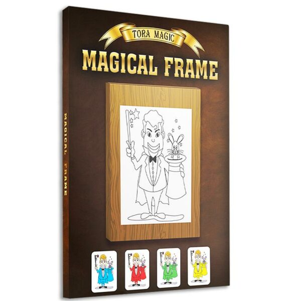 L’artiste montre un cadre qui renferme un dessin en noir et blanc d’un magicien. Il donne au spectateur 4 cartes avec chacune une tache d’une couleur differente. Il demande ensuite au spectateur de choisir une couleur parmi celles-ci. Un instant plus tard, le dessin du magicien sera colore et la robe et le haut-de-forme seront de la couleur choisie !