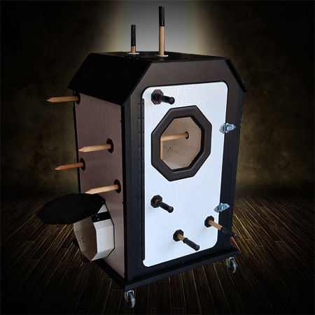 Dans cette cabine où votre partenaire prend place, ce ne sont pas les 2 cheminées et les 10 piques que vous allez lui enfoncer qui lui retireront son sourire.