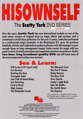 Au fil des ans, Scotty York a acquis une renommée internationale en tant que créateur de numéros et de routines de magie rapprochée parmi les plus ingénieux, et est considéré comme un artiste de classe mondiale. Depuis 15 ans, Scotty exerce le métier de barman magicien professionnel dans la région de Washington D.C. Il réalise des centaines de tours chaque soir devant des salles combles et parvient même à servir suffisamment d’alcool pour satisfaire sa direction ! Scotty conçoit sa magie avec deux objectifs en tête : époustoufler et divertir pleinement son public. Sur ce DVD de deux heures en qualité professionnelle, vous apprendrez certains des tours les plus commerciaux jamais conçus. Découvrez et apprenez : 20 $ contre deux billets de 10 $ (spectacle uniquement) : Couper les as, Torsader les as, Torsion ananas, Le dernier tour de Jacob Daley, Juste une pince à épiler, Carte dans le verre, Sauteur en hauteur, Les cartes déformées, La carte la plus chaude, Le poing du destin, Reines coquines, Le tour de la rose, Pauvre Charlie, L’ampoule de Scotty, Tourner la bouteille, Rasoir sans interrupteur, Les gitans. Plus de nombreux tours et mouvements que Scotty utilise sous pression dans une grande variété de spectacles. situations.