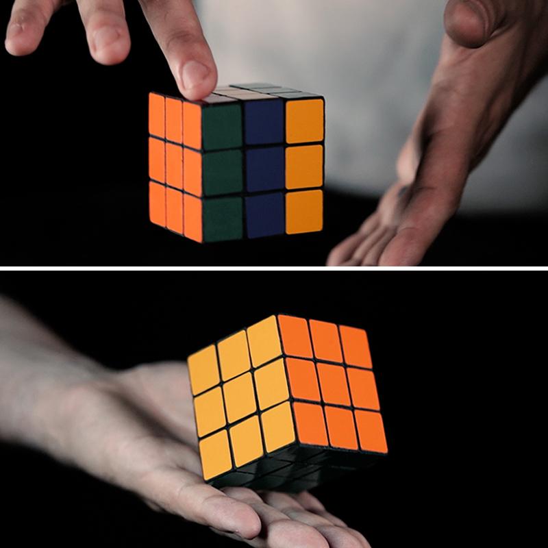 Un Rubik’s cube flotte et danse dans l’air sans aucun support visible. Peut être exécuté sur scène ou même dans un espace ouvert avec un public entouré.